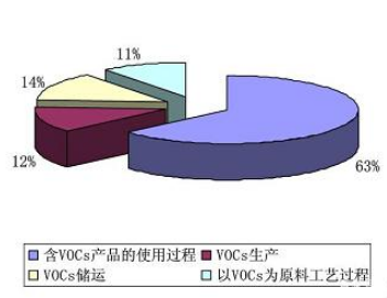 工業源VOCs排放涉及的行業眾多,目前缺乏權威認可的排放清單。2009年起環保部污控司組織中科院生態中心、清華大學、同濟大學、解放軍防化研究院、地質大學、華南理工大學等高等院校和科研院所中VOCs防治領域的專家對人為源排放情況進行估算。表1列出了估算的結果,其中工業源排放量占整個人為源的比重最高達55.5%,工業源中的重點工業行業包括石油煉制和儲運、化工、溶劑使用(包括表而涂裝)等。在工業源的四個產污環節中,含VOCs產品的使用過程環節排放最多,占整個工業源排放的60%以上,應予以重點控制。